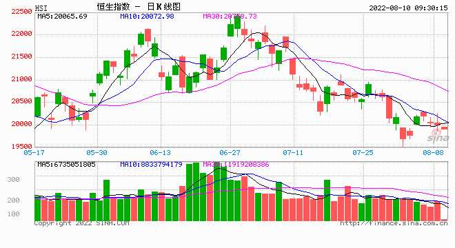 美股隔晚偏弱,美國《芯片法案》落地,市場關注內(nèi)地CPI數(shù)據(jù),今日早盤,港股恒指低開0.23%,報19956.51點,藥明生物、京東集團領跌藍籌。