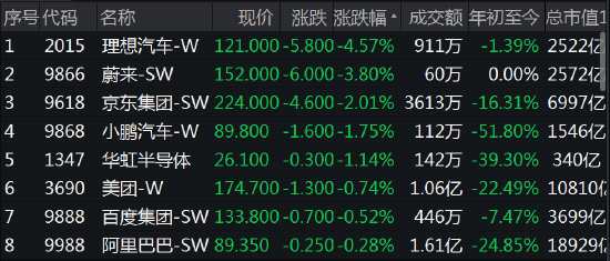 恒生科技指數(shù)繼續(xù)走跌,理想汽車大跌4.6%,蔚來跌3.8%,京東集團跌超2%,美團、百度、阿里等低開。