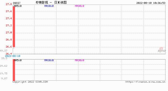 作為《三十而已》《小歡喜》等的出品方,檸萌影視將于8月10日正式掛牌港交所,昨日暗盤(pán)走跌,今日開(kāi)盤(pán)平開(kāi),目前破發(fā),跌2.5%,報(bào)價(jià)27.05%,市值98億港元。