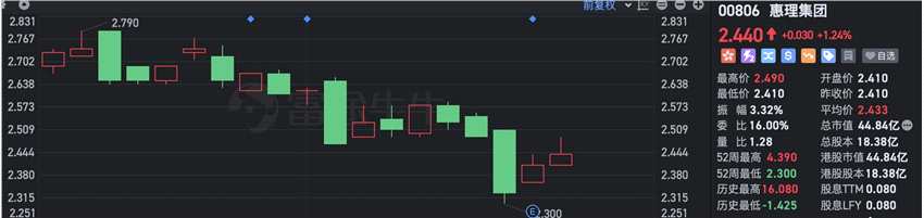 惠理集團(tuán)股價(jià)此前已多個(gè)交易日連續(xù)下挫,截止發(fā)稿微漲1.24%