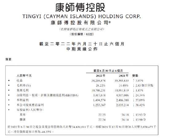 8月22日消息,康師傅控股:上半年股東應(yīng)占溢利約為12.53億元,同比下滑38.42%。