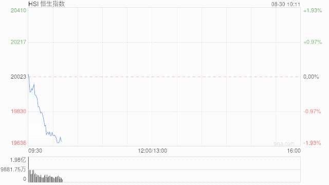 快訊:港股高開低走 恒指跌幅擴(kuò)大至1%