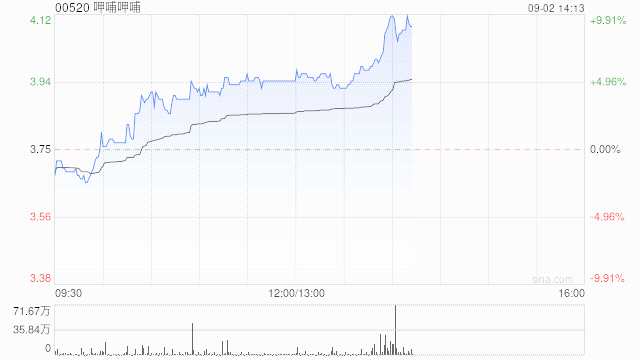 9月2日消息,呷哺呷哺一度漲近10%,現(xiàn)漲8.8%,報(bào)4.08港元。