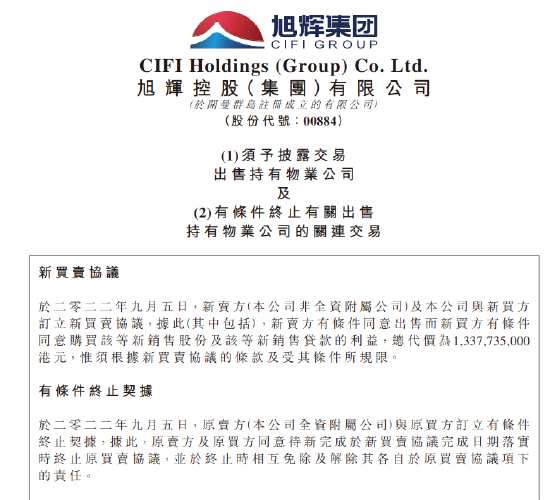 摘要: 旭輝控股集團(tuán)在港交所公告稱,公司持股60%的附屬公司將以13.4億港元出售香港地塊。旭輝控股集團(tuán)在港交所公告稱,九月五日,新賣方(公司非全資附屬公司旭輝地產(chǎn)202006有限公司)及本公司與新買方(華王