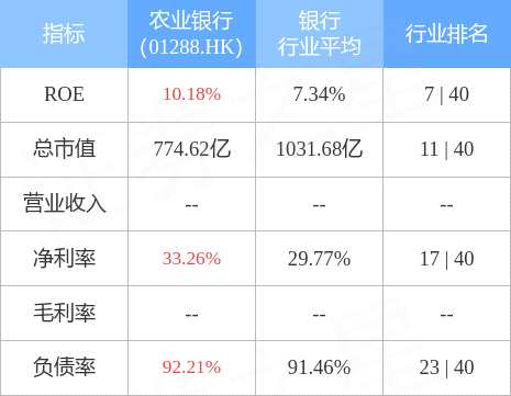 農(nóng)業(yè)銀行市值774.62億元,在銀行行業(yè)中排名第11。主要指標(biāo)見下表: