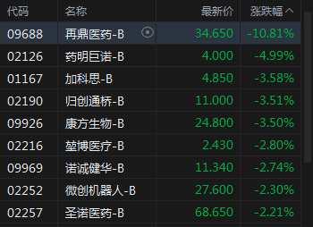 生物醫(yī)藥股集體走低 再鼎醫(yī)藥跌近11%藥明巨諾跌近5%