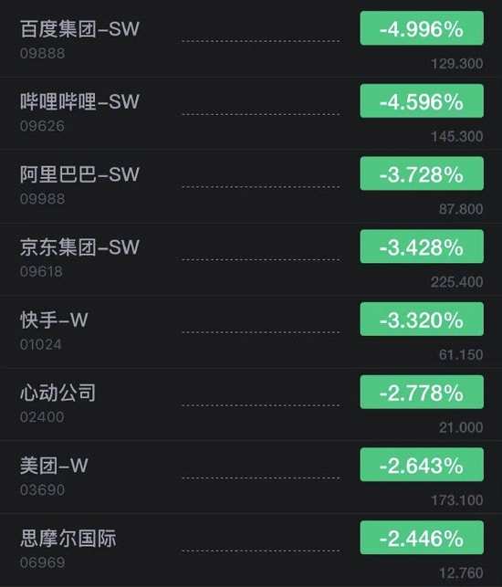 百度港股開跌5%,嗶哩嗶哩跌超4%