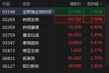 快訊:醫(yī)藥股集體上漲 金斯瑞生物科技、藥明生物漲近8%