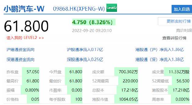 9月20日上午消息,香港恒生指數(shù)開盤漲0.73%,恒生科技指數(shù)漲1.33%。小鵬汽車開漲超8%,理想汽車開漲超5%,蔚來漲超4%。