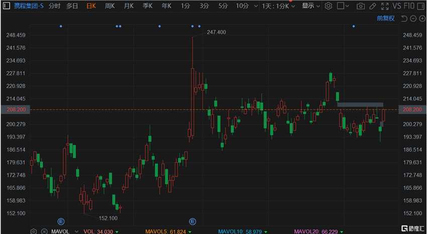 9月20日丨攜程集團(tuán)-S(9961.HK)拉升漲超6%,現(xiàn)報(bào)208港元,暫成交6958萬港元,總市值1422億港元。