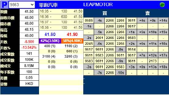 摘要: 9月28日消息,零跑汽車(chē)明日上市,據(jù)輝立證券顯示,暗盤(pán)跌近14%,報(bào)41.5港元。公司發(fā)行約1.31億股股份,每股定價(jià)48港元,每手100股。不計(jì)手續(xù)費(fèi),一手虧650港元。