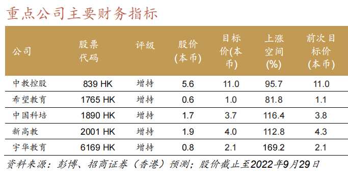 該行續(xù)指,高教行業(yè)估值仍處于低谷,平均未來(lái)12個(gè)月市盈率為4倍,這與穩(wěn)定的盈利基本面相偏離,部分也受到具有挑戰(zhàn)性的市場(chǎng)/宏觀環(huán)境的影響。在這一背景下,該行認(rèn)為高教行業(yè)和商業(yè)模式富有吸引力及防御性:1)高盈利質(zhì)量,源于在學(xué)年初始便預(yù)收全年學(xué)費(fèi);2)學(xué)生“消費(fèi)”跨度為3-4年,可支撐多年現(xiàn)金流;3)整個(gè)行業(yè)的資產(chǎn)負(fù)債表保持健康;4)低政策風(fēng)險(xiǎn)以及政策支持;5)大多數(shù)公司正/將維持高現(xiàn)金股息支付率,這意味著在當(dāng)前低估值倍數(shù)的情況下將具有高股息收益率。同時(shí),行業(yè)監(jiān)管擔(dān)憂減少亦為另一主要催化劑。該行維持對(duì)中國(guó)教育板塊的“推薦”評(píng)級(jí)。