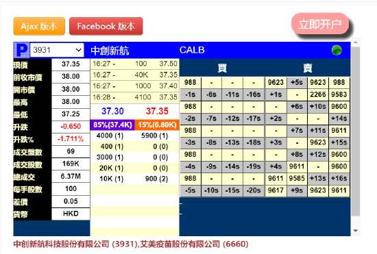 10月5日消息,中創(chuàng)新航明日香港上市,據(jù)輝立證券顯示,安排跌近2%,現(xiàn)報(bào)37.35港元。公司擬發(fā)行約2.66億股股份,每股定價(jià)38港元,每手100股,預(yù)計(jì)10月6日上市。