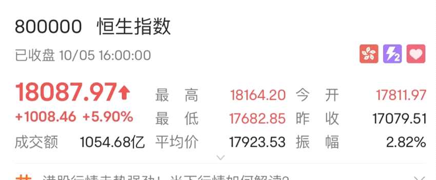 由于4日重陽(yáng)節(jié),港股暫停交易一天。5日,港股市場(chǎng)便迎來這輪大漲行情。