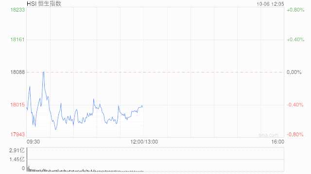 10月6日消息,美股周三收跌。市場仍在討論美聯(lián)儲政策會不會轉(zhuǎn)向。美國9月ADP就業(yè)人數(shù)略超預(yù)期,數(shù)據(jù)公布后,美聯(lián)儲11月加息75個基點的概率略有上升。今日港股恒指開漲0.07%,隨后走低,截至午盤,恒生指數(shù)跌0.43%,報18010.18點;國企指數(shù)跌0.69%,紅籌指數(shù)跌0.10%。