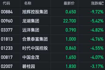 內(nèi)房股集體走低,旭輝控股跌近10%龍湖集團(tuán)跌超5%