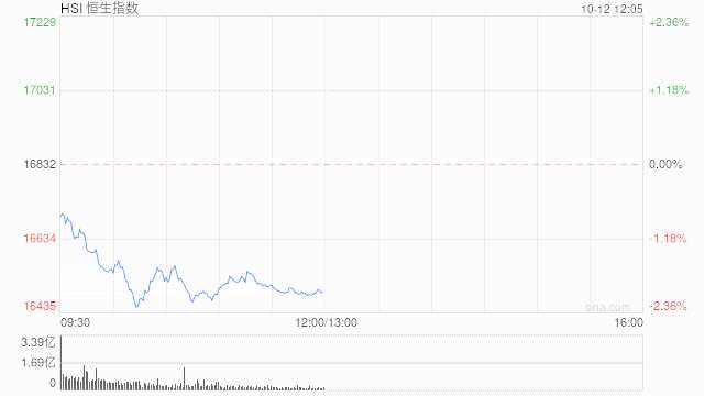 9月,新增社融3.53萬億元、同比多增6245億元,大超市場預期的2.73萬億元;央行再談人民幣匯率:堅決抑制匯率大起大落,不會出現(xiàn)“單邊市”。今日早盤,港股恒指低開低走,截至午盤,恒指跌2%,報16495.52點,中國平安、友邦保險等走高。