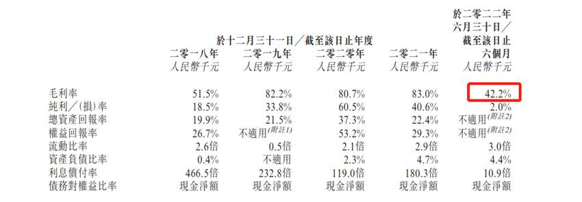 純利率方面降幅更大,風(fēng)華秋實(shí)2018年-2021年純利率分別為 18.5%、 33.8%、 60.5% 、40.6%,及至2022年上半年,純利率則暴跌至2.0%。