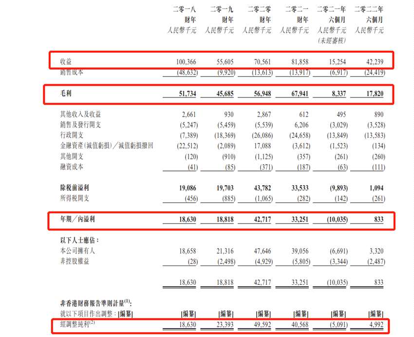 財(cái)務(wù)數(shù)據(jù)方面,2019財(cái)年、2020財(cái)年及2021財(cái)年,風(fēng)華秋實(shí)收益分別約為5560.5萬(wàn)、7056.1萬(wàn)、8185.8萬(wàn)元人民幣;公司的純利約為1881.8萬(wàn)、4271.7萬(wàn)、3325.1萬(wàn)元人民幣。2022年上半年收入4223.9萬(wàn)元,期內(nèi)溢利83.3萬(wàn)元。值得注意的是,風(fēng)華秋實(shí)截至6月底止上半年收入按年增1.77倍至4223.9萬(wàn)元(人民幣,下同);