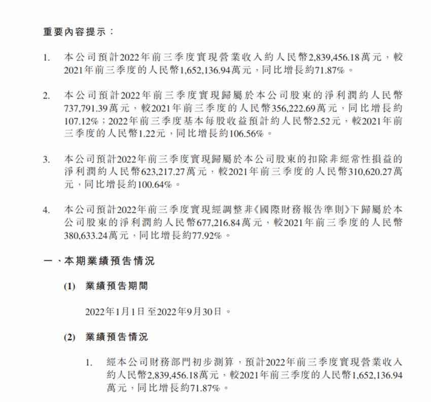 消息方面,藥明康德在12日晚間發(fā)布公告,預(yù)計(jì)2022年前三季度實(shí)現(xiàn)歸屬于公司股東的凈利潤約人民幣約73.78億元,較上年同期人民幣約35.62億元,同比增長約107.12%