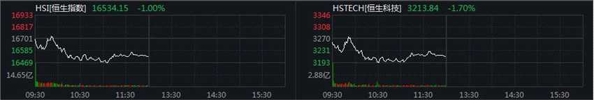 中新經(jīng)緯10月13日電 13日,港股主要股指震蕩下跌。截至午盤,恒生指數(shù)跌1.00%,恒生科技指數(shù)跌1.70%,國(guó)企指數(shù)跌1.33%,紅籌指數(shù)跌0.09%。