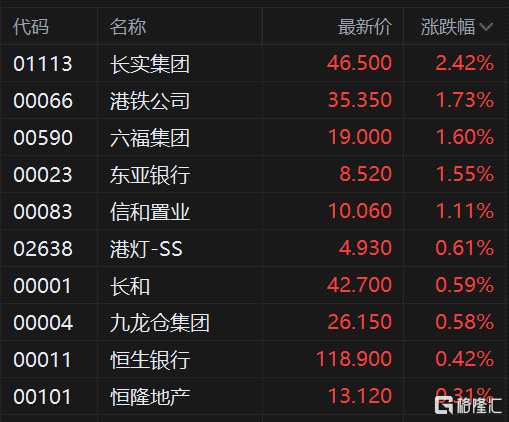 香港本地股部分上漲,李家超《施政報(bào)告》或?qū)⑻岢錾姘l(fā)展經(jīng)濟(jì)等措施。消息面上,香港行政長官李家超今天上午11點(diǎn)將宣讀他任內(nèi)首份《施政報(bào)告》,預(yù)告將提出關(guān)于發(fā)展經(jīng)濟(jì)、改善民生的政策及措施,包括土地房屋問題及增強(qiáng)香港競爭力。
