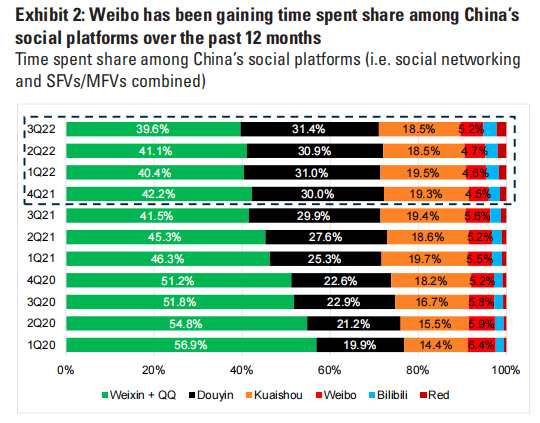 高盛發(fā)研報(bào)指,預(yù)計(jì)微博(09898)將在11月中下旬公布2022年第三季度業(yè)績(jī)。在去年高收入基數(shù)及當(dāng)前疲軟宏觀環(huán)境下,該行現(xiàn)預(yù)測(cè)公司三季度:1)收入將同比下降21%至4.79億美元(該行此前預(yù)測(cè)為同比跌19%,調(diào)整主因匯率因素);基于當(dāng)前外匯市場(chǎng),或收入同比跌17%,主因廣告收入同比下降19%/環(huán)比增11%,以及增值服務(wù)收入同比下降4%;2)非美國(guó)通用會(huì)計(jì)準(zhǔn)則凈利潤(rùn)同比下降36%至1.35億美元。另一方面,雖然微博的持續(xù)內(nèi)容投資于短期內(nèi)使毛利率承壓,但微博用戶參與度亦有提高(根據(jù)Questmobile的數(shù)據(jù),第三季度環(huán)比增長(zhǎng)18%),使其在過去一年中,中國(guó)社交平臺(tái)的市場(chǎng)份額持續(xù)增長(zhǎng)。