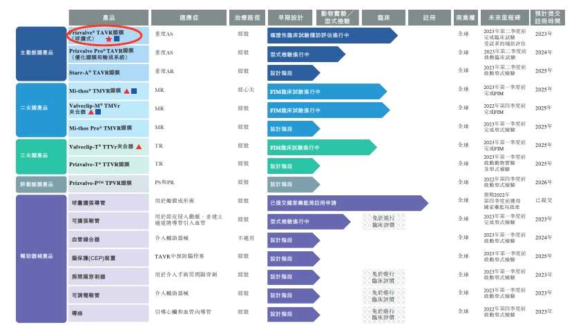 根據(jù)弗若斯特沙利文的資料,截至2021年,中國有超過2000萬瓣膜性心臟病的患者。近年來,憑借低侵入性及康復(fù)較快等特點,介入心血管治療(如經(jīng)導(dǎo)管心臟瓣膜治療)已成為值得期待的臨床選擇。目前紐脈醫(yī)療三項核心在研產(chǎn)品(即Prizvalve、Mi-thos及Valveclip-M)均已進入國家藥監(jiān)局創(chuàng)新醫(yī)療(002173)器械綠色通道。