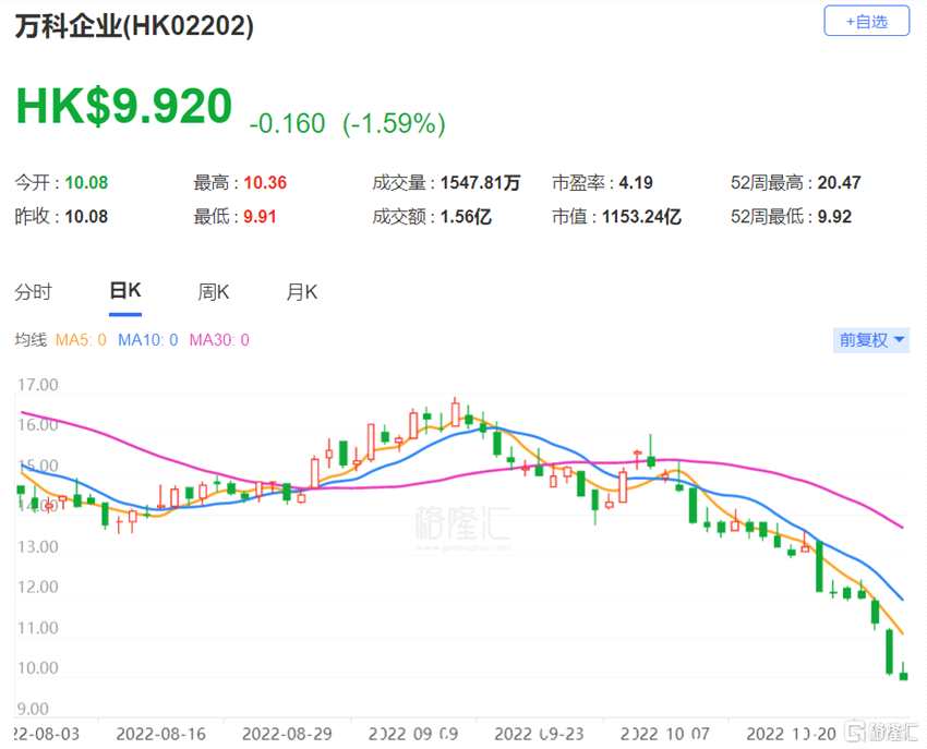 瑞信:維持萬科(2202.HK)跑贏大市評級 目標價降至16.8港元