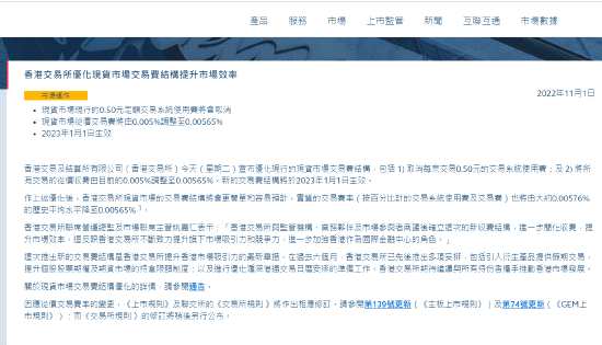 港交所:優(yōu)化現(xiàn)行的現(xiàn)貨市場交易費結(jié)構(gòu),取消每宗交易0.5元的交易系統(tǒng)使用費