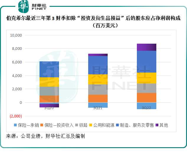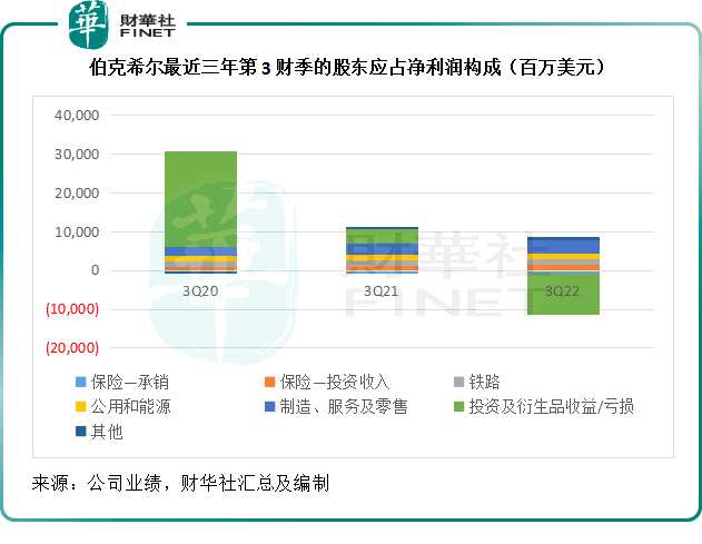 2022年第3季,伯克希爾轉盈為虧,由去年同期錄得股東應占凈利潤103.44億美元,變?yōu)楫a(chǎn)生凈虧損26.88億美元。