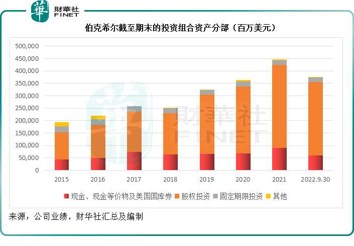 前文提到,截至2022年9月30日,伯克希爾的浮存金為1500億美元,但是其投資組合的公平值卻達到3768.14億美元,可見浮存金所帶來的投資回報和資本累積有多大。