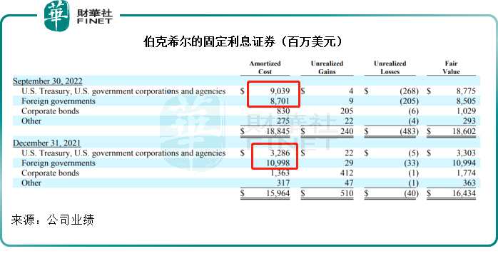 見下表,2022年9月30日的固息證券中,美國政府債券的攤銷成本由2021年末的32.86億美元,增至90.39億美元,而外國政府債券和企業(yè)債券則分別由2021年末的109.98億美元降至87.01億美元,以及由13.63億美元降至8.3億美元。