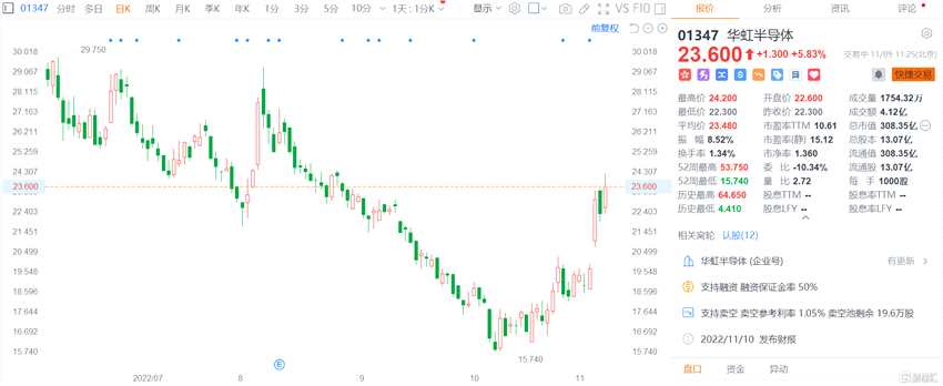 摘要: 互聯(lián)網(wǎng)11月9日丨華虹半導(dǎo)體漲近6%,報23.6港元創(chuàng)近兩個半月新高,最新總市值308億港元。繼中芯國際回A后,又一家港股半導(dǎo)體企業(yè)擬發(fā)行A股上市。11月4日,上交所受理了港股華虹半導(dǎo)體(01347.