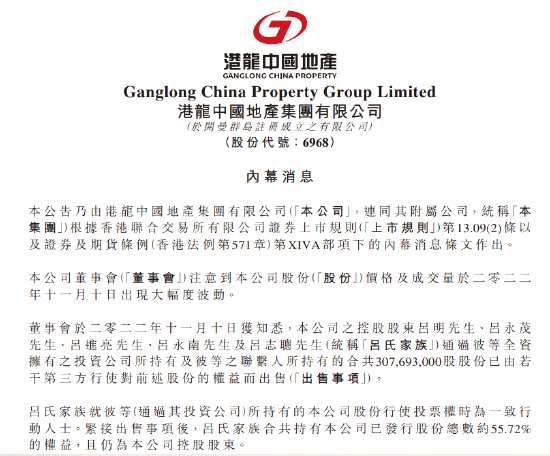 港龍中國(guó)地產(chǎn)近期持續(xù)暴跌年內(nèi)跌90%,實(shí)控人3.077億股股份被強(qiáng)制出售