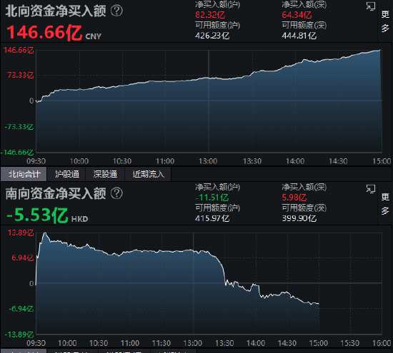 收評:北向資金凈買入146.66億元 滬股通凈買入82.32億元