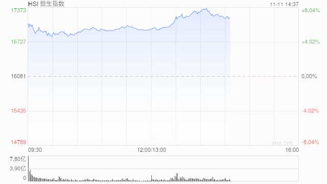 11月11日消息,港股延續(xù)漲勢(shì),恒指漲幅擴(kuò)大至8%,恒生科技指數(shù)漲超10%,地產(chǎn)、科技、文旅股持續(xù)發(fā)力。恒指成分股中,碧桂園漲超33%,龍湖集團(tuán)漲25.5%,京東、藥明生物漲超17%。