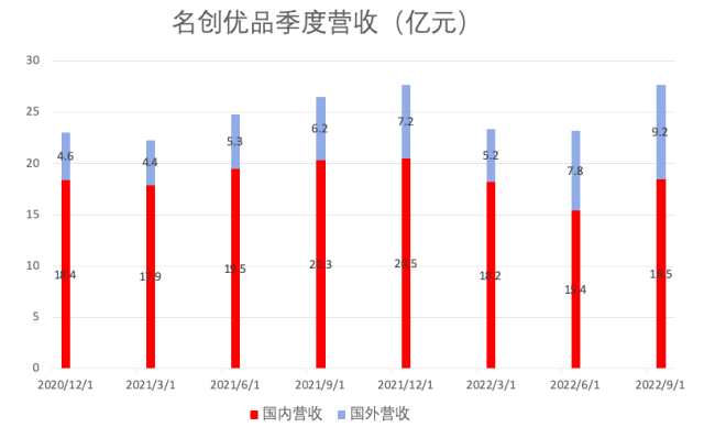 該季度,名創(chuàng)優(yōu)品來自海外市場的收入同比增長47.6%,達(dá)到9.2億元,而來自中國的收入同比減少8.8%,為18.5億元;國內(nèi)外收入環(huán)比上一季度均有增長。