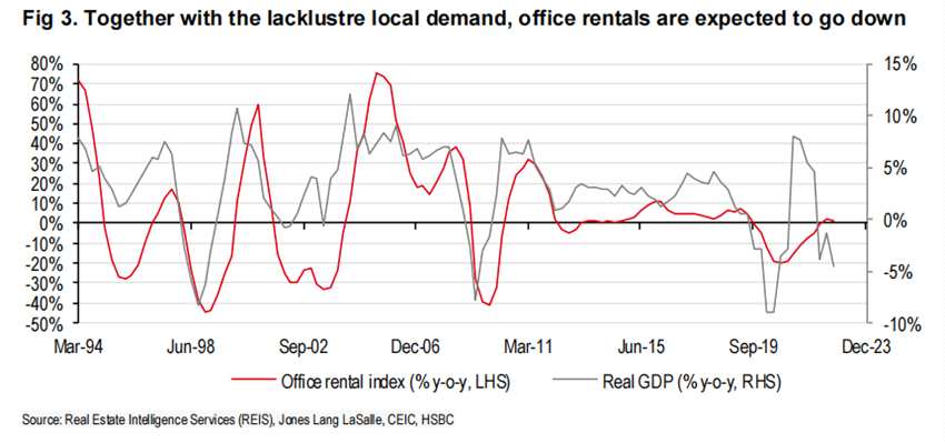 圖:加之本地需求的低迷,預(yù)計(jì)寫字樓租金將會(huì)下降