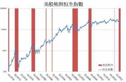 若然這假設(shè)成立的話,即美股熊市將延續(xù)至明年下半年經(jīng)濟(jì)衰退出現(xiàn)之后才結(jié)束,意味港股亦不可能擺脫美股熊爪獨(dú)自出現(xiàn)牛市。事實(shí)上,自1970年至今,若然美股處于熊市階段,港股走勢(shì)往往都仍是處于尋底中、難以誕生牛市(圖1;紅色位置為美股處于熊市時(shí)間)。