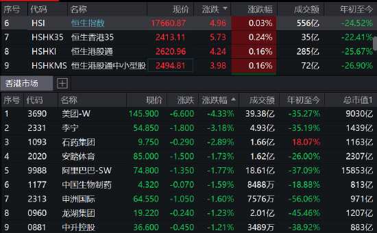 臨近午盤,恒指再度拉升翻紅,目前漲0.03%,美團(tuán)跌幅收窄至4%,中國(guó)聯(lián)通大漲逾8%,南向資金11月17日凈買入中國(guó)聯(lián)通1793.2萬股,近5日累計(jì)凈買入9392.4萬股,近30日累計(jì)凈買入2.09億股。金融股走高,中國(guó)人壽、中國(guó)平安等漲2%。