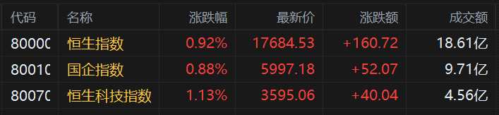 盤面上,大型科技股普遍上漲,網(wǎng)易漲近4%,美團(tuán)、百度、阿里巴巴、騰訊均漲超1%,小米績后跌近1%;金融支持房地產(chǎn)十六條正式發(fā)布,內(nèi)房股與物管股大漲,龍湖集團(tuán)、碧桂園表現(xiàn)較佳;電子煙概念股、家電股、體育用品股普漲。另一方面,國際油價下跌,三桶油集體低開,生物醫(yī)藥股部分走低。