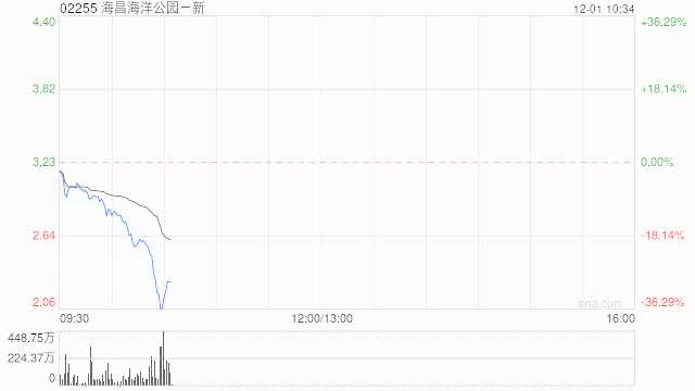 12月1日消息,海昌海洋公園-新持續(xù)走低,現(xiàn)跌30.96%,報2.23港元,最新市值180.94億港元。