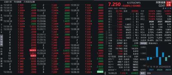 阿里健康流出6559萬(wàn)股,大約5億資金出逃,最后一分鐘跌0.96%。