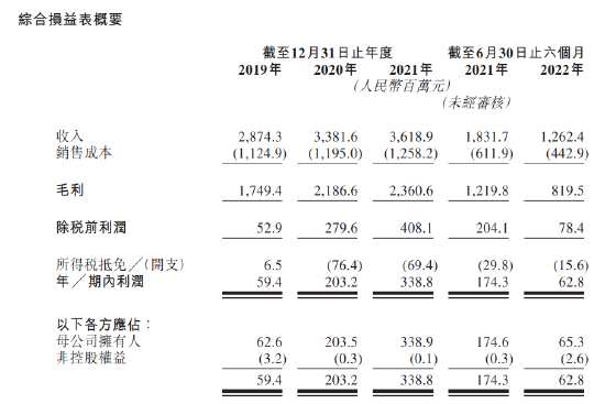 公司還披露了7月到10月的業(yè)績(jī)表現(xiàn),由于疫情影響,公司認(rèn)為需要數(shù)月恢復(fù)2021年的盈利能力。根據(jù)招股書,2022年前9個(gè)月實(shí)現(xiàn)收入17.98億,同比下滑逾30%,毛利下滑至11.7億,同比下滑30.8%;前10個(gè)月公司實(shí)現(xiàn)收入20.82億,同比下滑28.8%。
