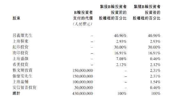 2020年10月公司引入B輪融資,本次融資4.3億元,引入雅戈?duì)?600177)投資、安信智普投資等,投后估值65億元。其中,A輪、B輪有12個(gè)月禁售期。
