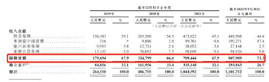 同期,多點(diǎn)來(lái)自物美集團(tuán)的收入分別為1.6億、2.7億、4.7億、4.9億,收入占比分別為59.1%、54.5%、45.3%、44.4%。