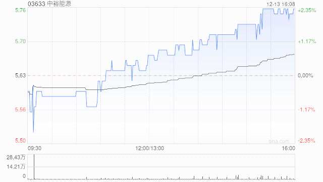 中裕能源12月13日斥資284.39萬(wàn)港元回購(gòu)50萬(wàn)股