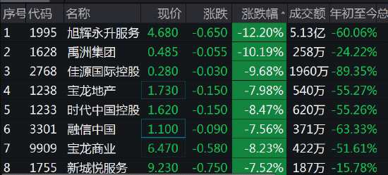 配股一個(gè)接一個(gè),旭輝永升再度配股,內(nèi)房股集體走跌,旭輝永升大跌12%,禹洲集團(tuán)大跌10%,佳源國(guó)際控股跌近10%,時(shí)代中國(guó)跌8%,融信中國(guó)跌7.6%。