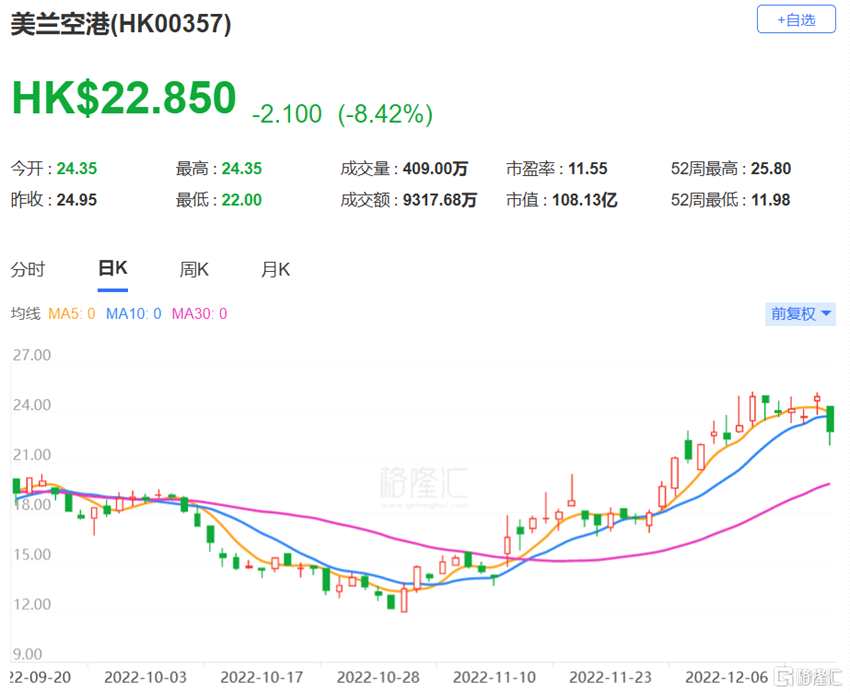 由于客運(yùn)量及免稅品銷售低于預(yù)期,該行預(yù)計美蘭空港今年將出現(xiàn)凈虧損,將2023至2024年每股盈利預(yù)測下調(diào)2%至28%,評級從“買入”下調(diào)至“持有”,吁投資者耐心等待更佳切入點(diǎn),因股價自10月底低位已累升逾一倍;以現(xiàn)金流折現(xiàn)計,目標(biāo)價則由26港元略降至25港元。
